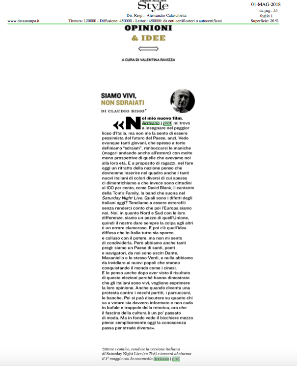 To entrust the classes to the worst of the available teachers. Video e testo Scritto da Redazione Il 1 maggio 2018 esce il nuovo film Arrivano i Prof pellicola diretta da Ivan Silvestrini che vede protagonisti tra gli altri Claudio Bisio e il rapper Rocco Hunt.